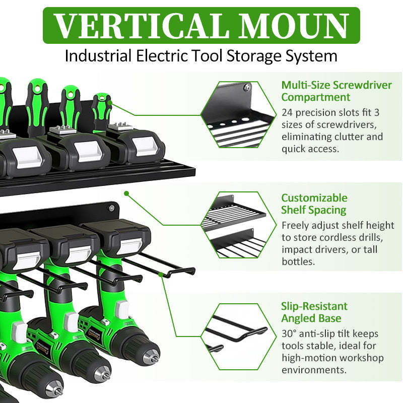 ?Sturdy 60 Lbs Capacity? Engineered with reinforced metal frames and anti-slip brackets, this organizer securely holds drills, batteries, and accessories up to 60 lbs, ensuring reliable storage for heavy tools.