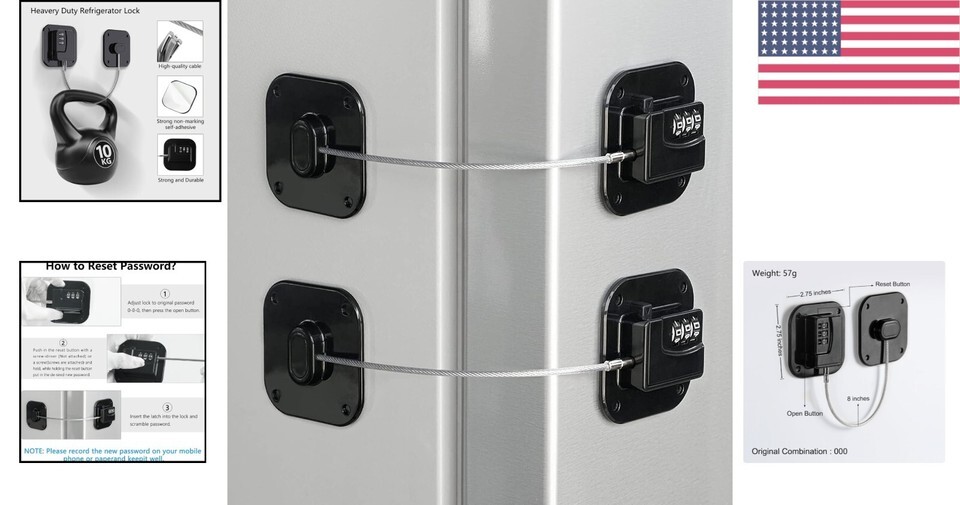 - Heavy Duty Refrigerator Lock - Portable Combination Lock Set, Easy Install 2Pack