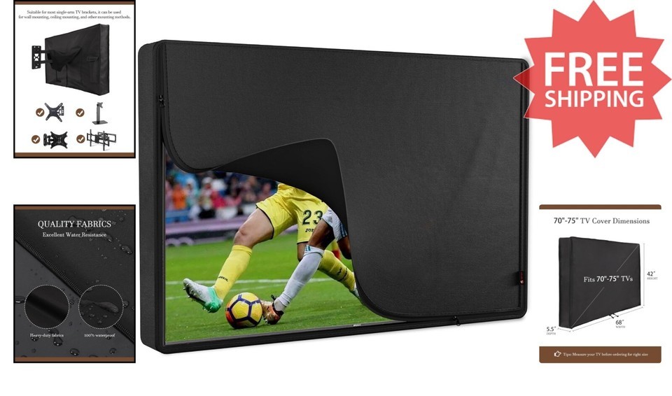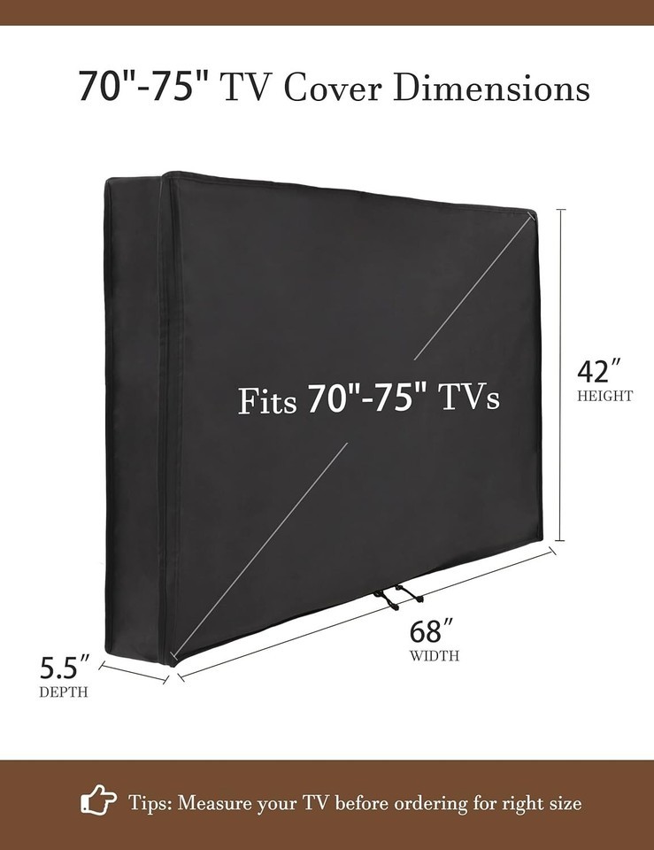 - Heavy-Duty Waterproof Outdoor TV Cover 70-75 Inch, Zipper Design & Remote Pocket