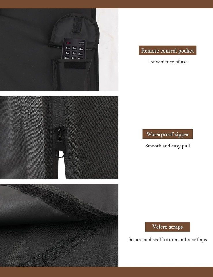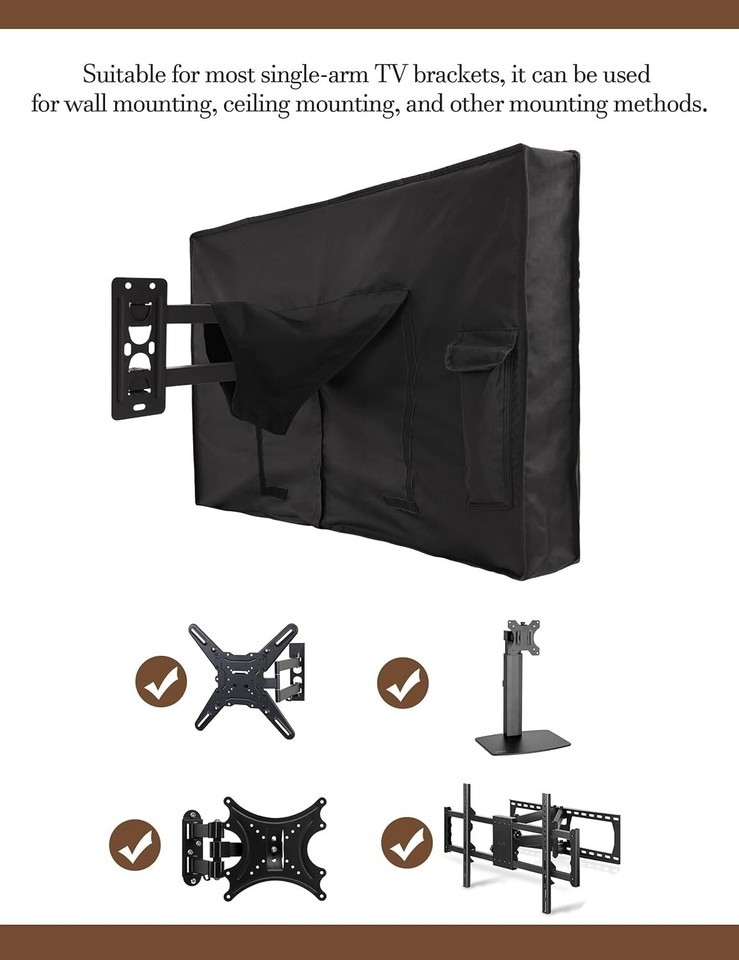 Ensure your outdoor TV remains protected with our durable outdoor TV cover. Crafted from heavy-duty materials with a waterproof PVC interior, it offers superior defense against harsh weather conditions. Sized at 68 inches wide, 42 inches high, and 5 inches deep, it's designed for a perfect fit?just measure your TV before purchasing. Featuring a waterproof zipper for easy installation and a convenient pocket for remote storage, this cover combines practicality with robust protection. The innovative back flap provides extra safeguarding for your TV stand, so you can enjoy your outdoors worry-free.