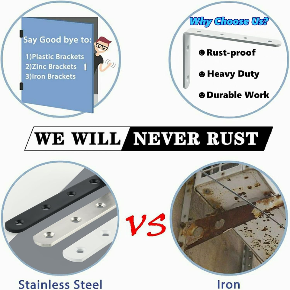 ?Heavy Duty Support?Constructed from thickened stainless steel, these brackets are designed to withstand substantial weight, supporting up to 10 pounds per pair. Their durability ensures that your shelves remain secure and stable, even when loaded with books, decorative items, or other essentials.