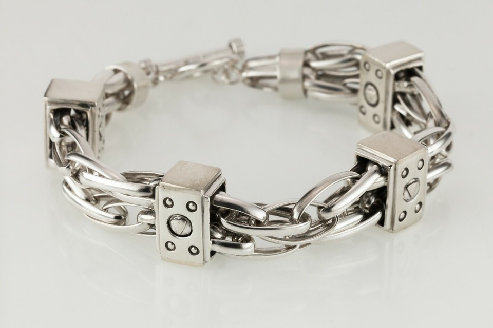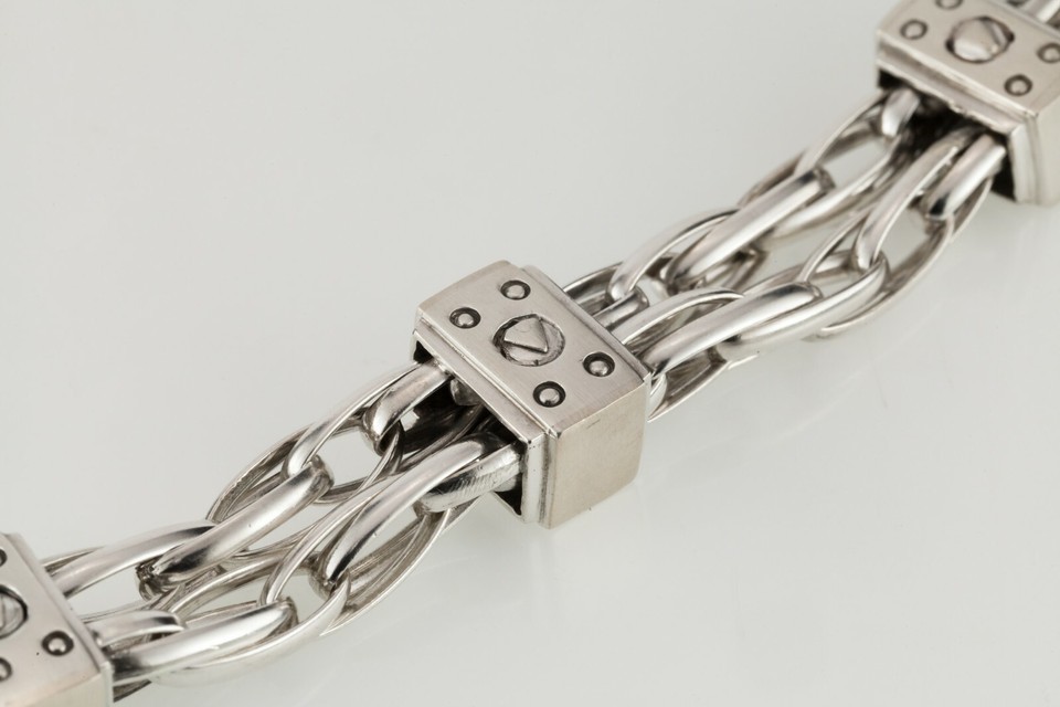 - Heavy Sterling Silver Double-Strand Chunky Statement Chain Bracelet Toggle Clasp