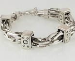 Gorgeous Double-Strand Multi-Link Sterling Silver Bracelet w/ Box Accents and Toggle Clasp