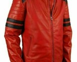 Hecho a mano Nuevo cuero genuino de piel de cordero rojo elegante chaqueta para hombre motocicleta motociclista / FS