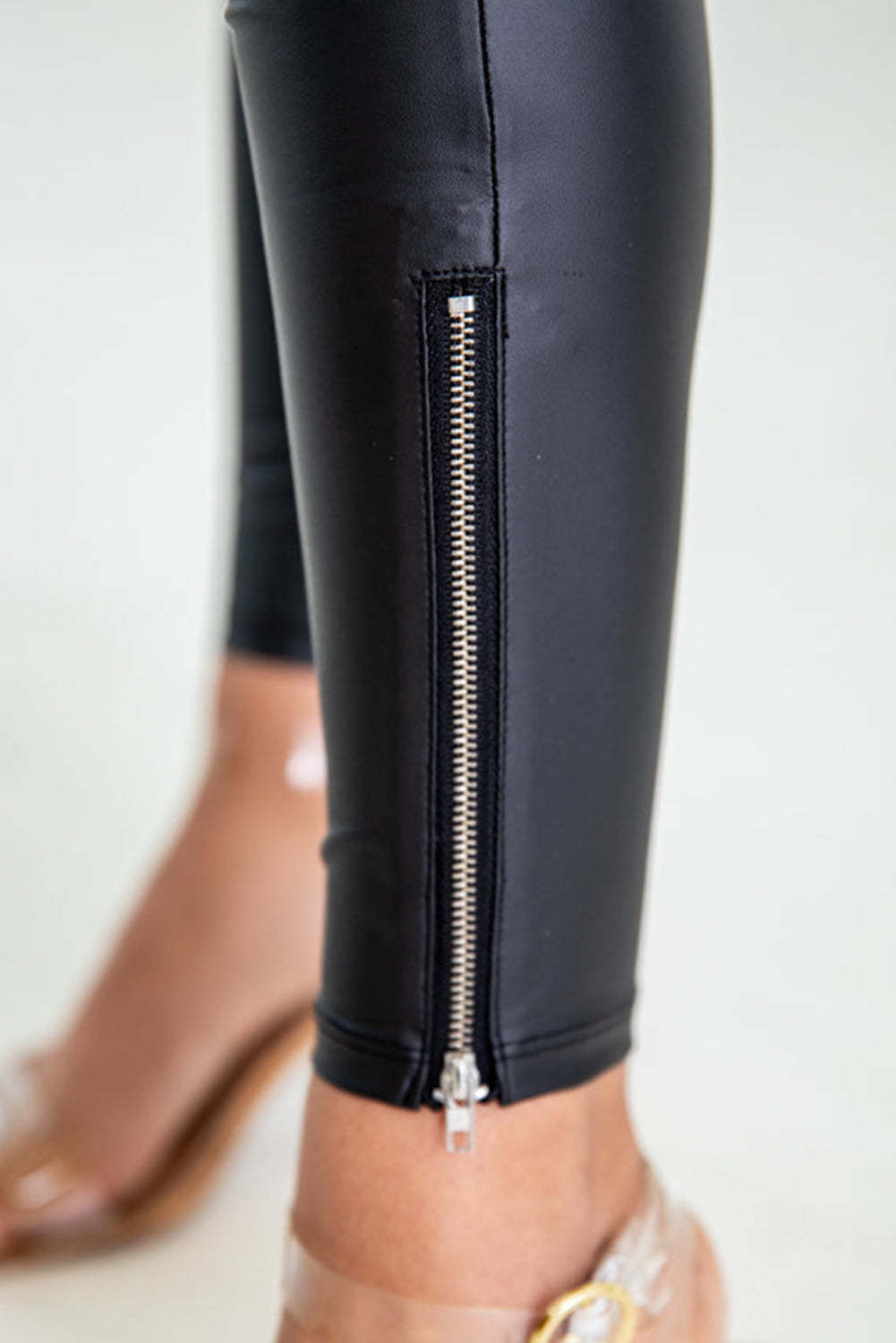Unlock the classic style of these faux leather leggings. Zipped side detailing provides a unique look for added versatility. Enjoy the many styling opportunities of this high-waist design. Create a stunning silhouette with this fashionable addition to your wardrobe.