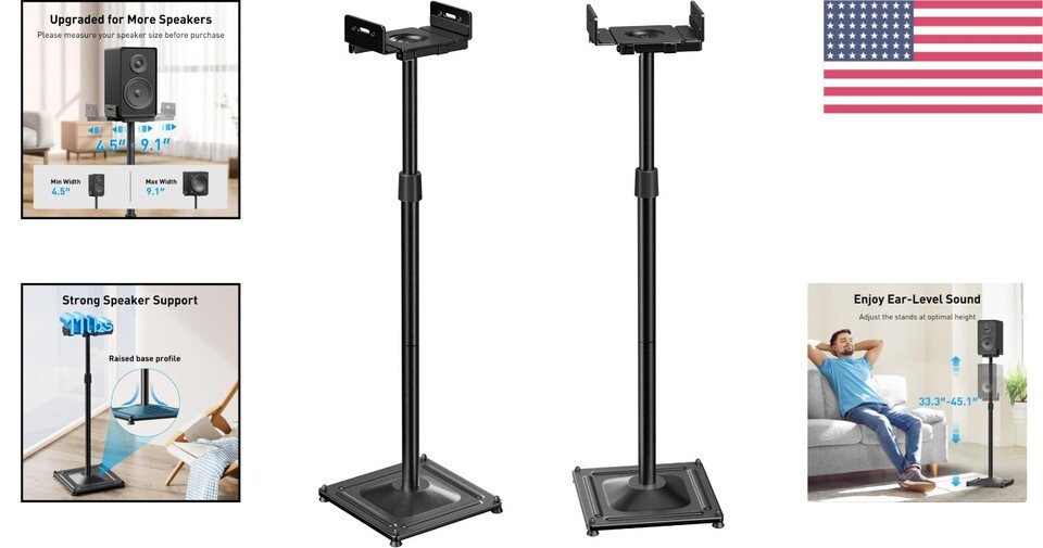 - Height Adjustable Universal Speaker Stands, 33.3” to 45.1” for Quality Sound
