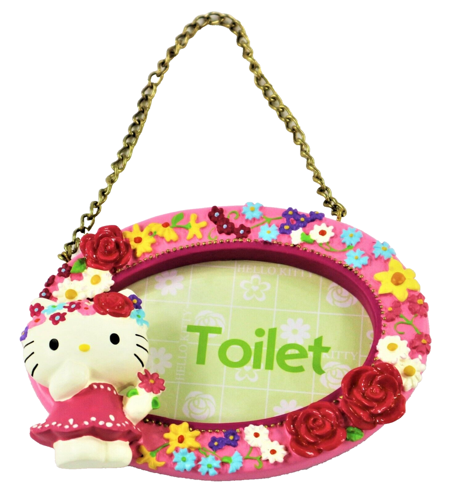 - Hello Kitty Door Sign Frame. - UPC #039937405459. - Comes with Chain. - Easy to hang. - Make your own sign and change from the back of frame. - Material: Plastic. - Original Sanrio Vintage Product.