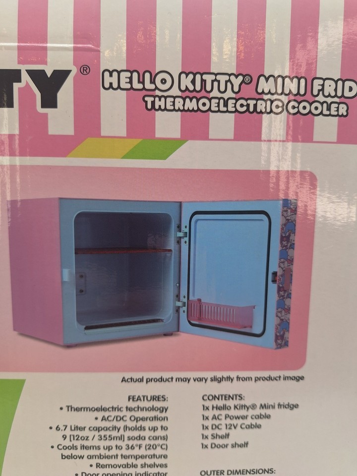 - Hello Kitty Mini Fridge Holds 9 Cans New In Box Thermoelectric Cooler