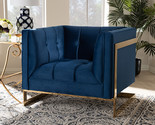 - Herald Royal Blue Velvet Fabric Button Tufted Armchair w/Gold-Tone Frame