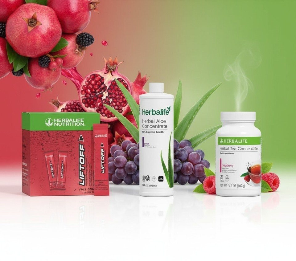 Stay energized, focused, and hydrated with this fruity Herbalife trio! Featuring Raspberry Herbal Tea Concentrate, Grape Aloe Concentrate, and 30 Liftoff Pomegranate Berry Blast Energy Sticks, this set combines clean energy, digestive support, and bold grape flavor ? perfect for mornings, workouts, or busy days.