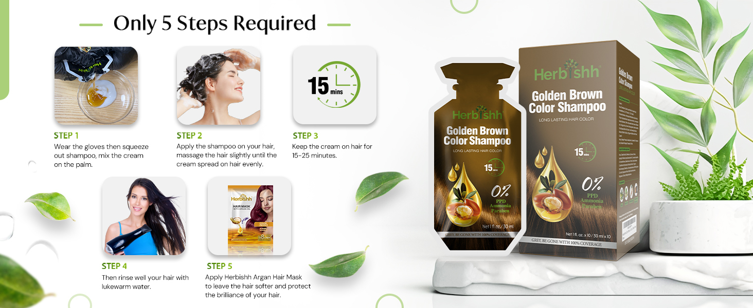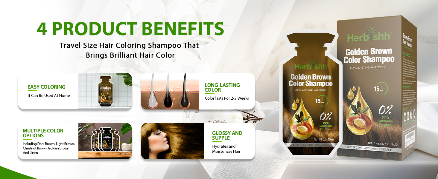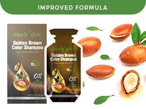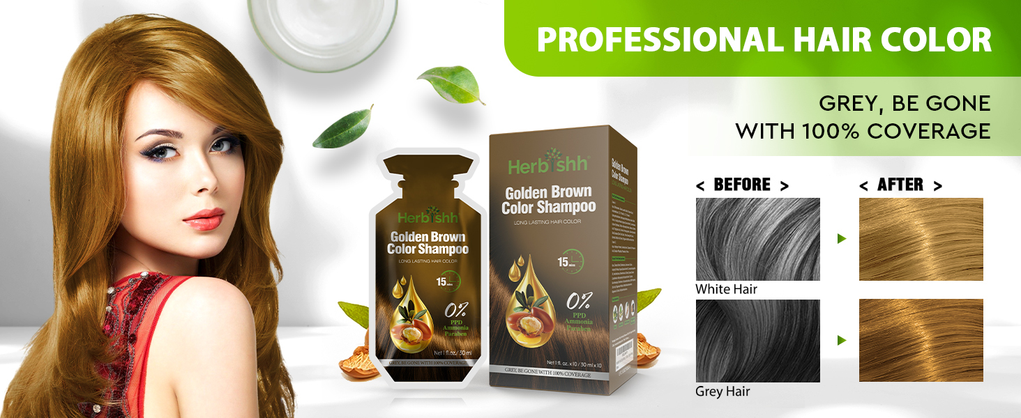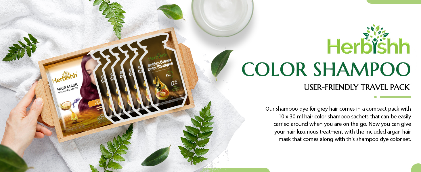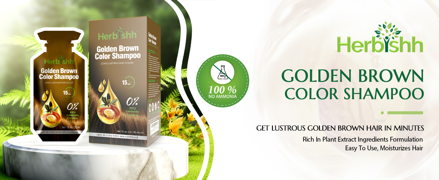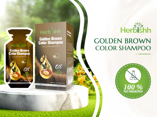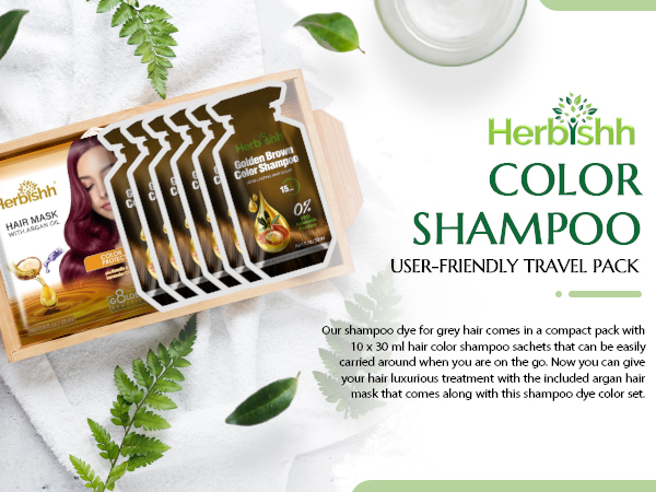 - Herbishh Hair Color Dye Shampoo 10 Sachet PPD Free Travel Size - Golden Brown