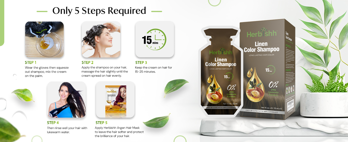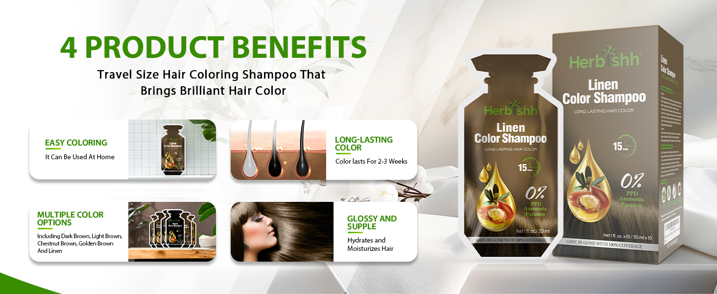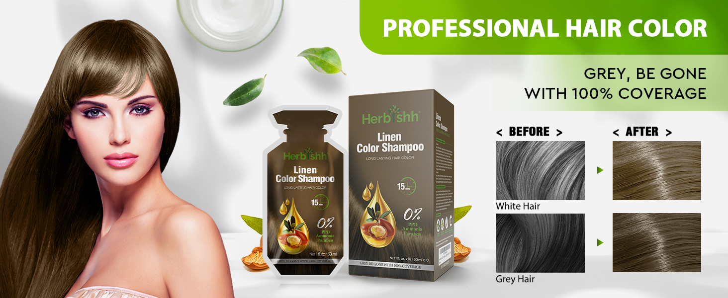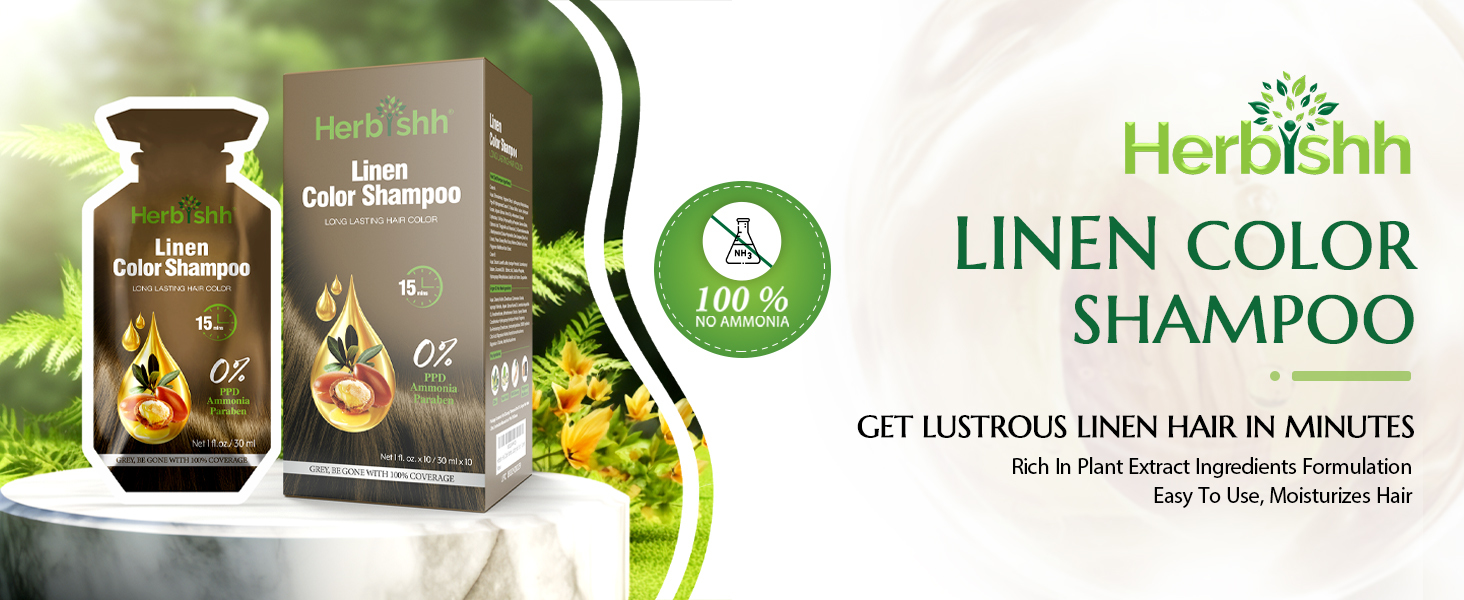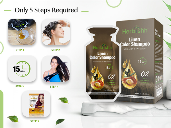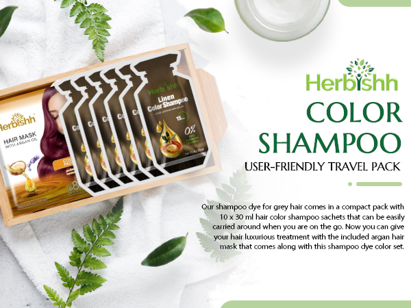 - Herbishh Hair Color Dye Shampoo 10 Sachet PPD Free Travel Size - Linen