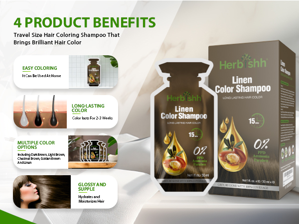 AVAILABLE IN MULTIPLE COLORS TO MATCH YOUR HAIR– Choose from a variety of colors (Black, Dark Brown, Light Brown, Chestnut Brown, Linen, Golden Brown) that are sure to suit your natural hair color to give you seamless coverage! This hair dye shampoo (dark) comes in a 30ml pack that is sure to last you for a long time.