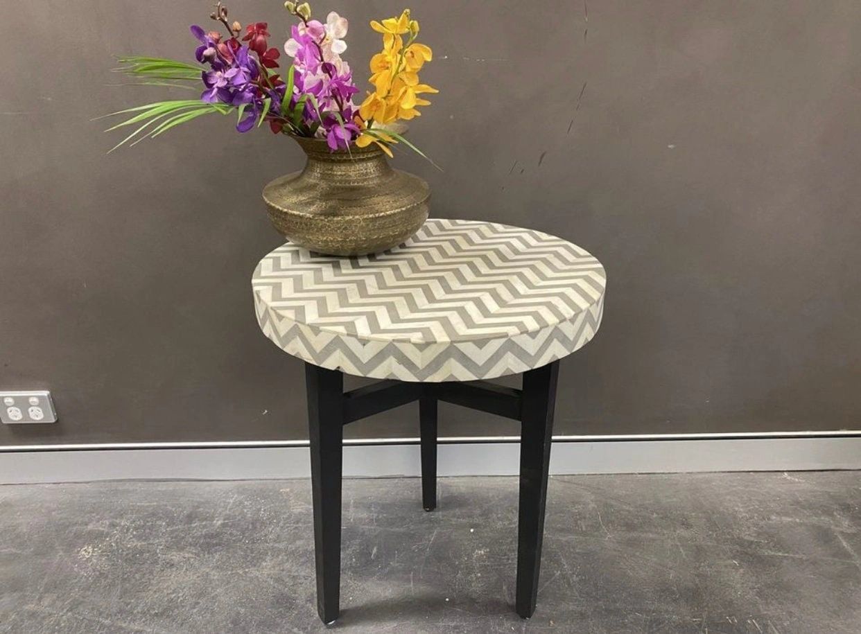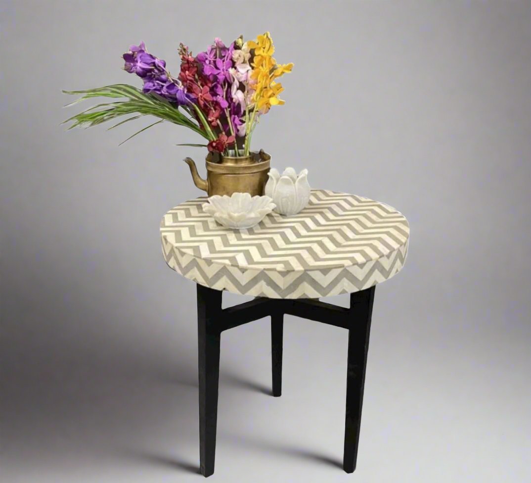 Heritage inlay in Black geometric pattern wooden plant stand or side table in gr
