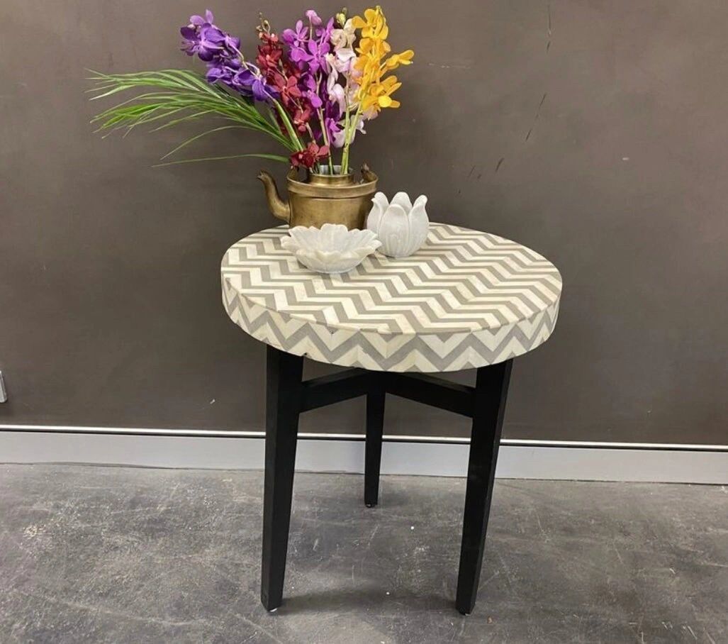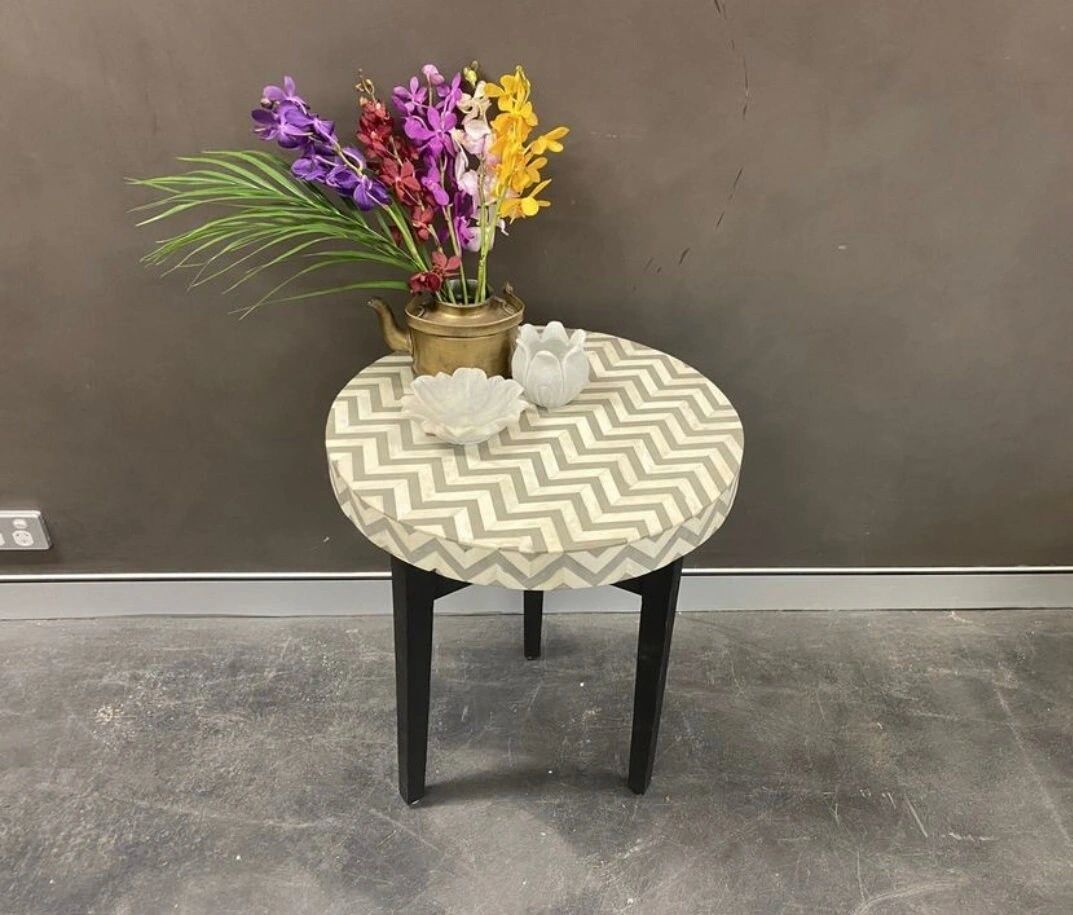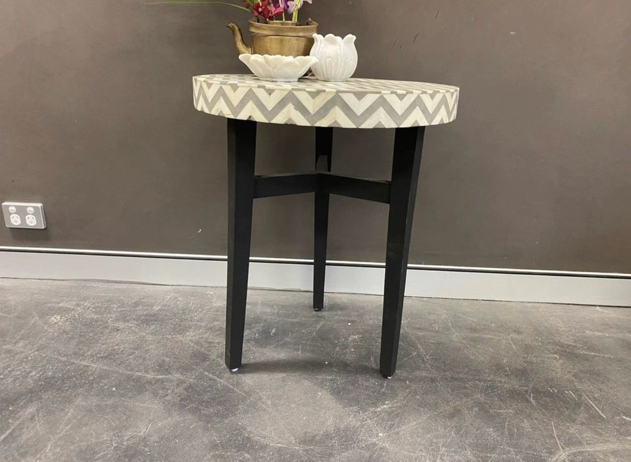 - Heritage inlay in Black geometric pattern wooden plant stand or side table in gr
