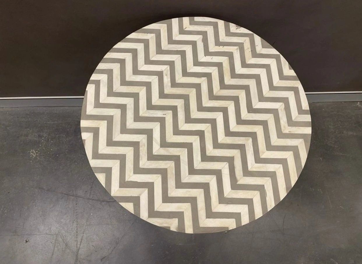 Heritage Inlay Geometric Pattern Plant Stand ? Grey Base with Black Inlay