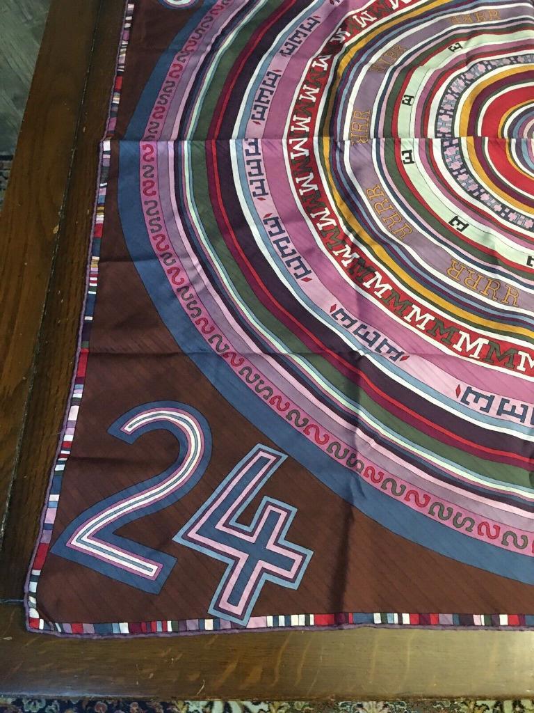 This is an authentic Hermes silk scarf that is in excellent condition. There are no stains, runs or snags. It is 100% silk, made in France. The care tag is intact.