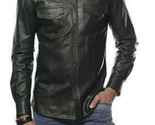 Primary image for Herren Echt Lammleder Leder Hemd Stilvoll Schwarz Handgefertigt Modisch Freizeit