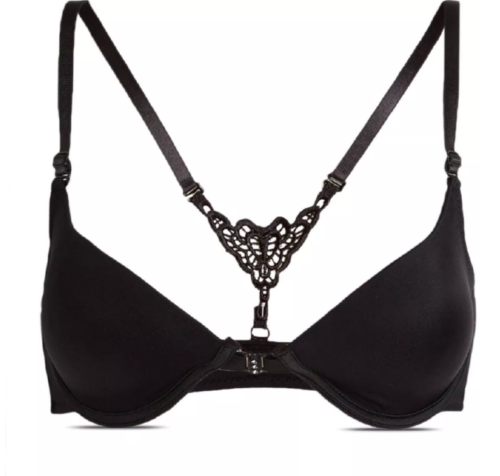Hers By Herman Bra Black Crochet Racerback Front Close Size 36B New