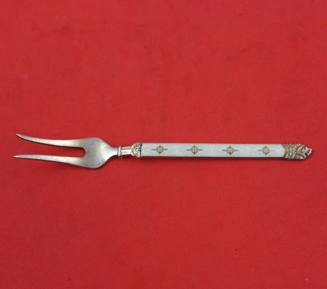 - Hestenes Norwegian Sterling Silver Pickle Fork 2-Tine with White Enamel 3 7/8"