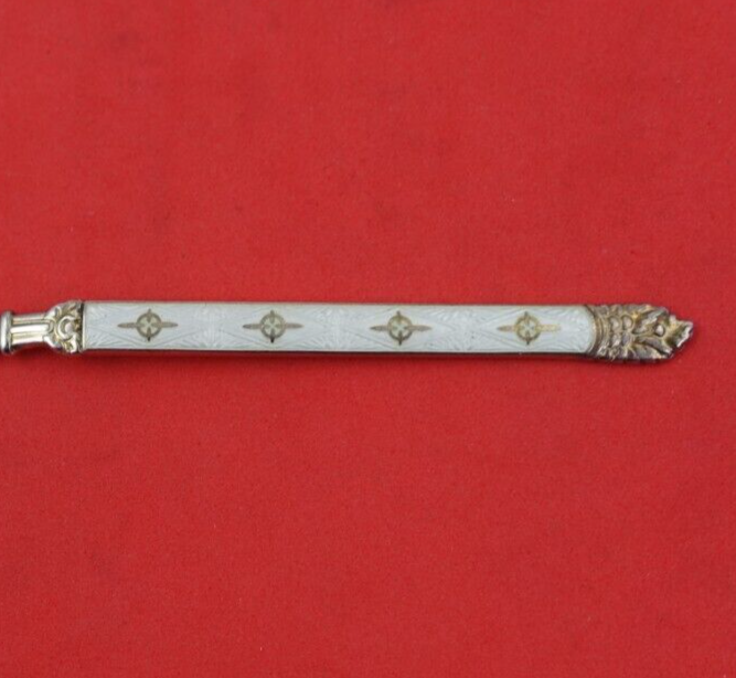 Norwegian sterling silver Pickle Fork 2-Tine with White Enamel 3 7/8" by Hestenes. It is not monogrammed and is in good estate condition as shown in the photos. Wonderful!