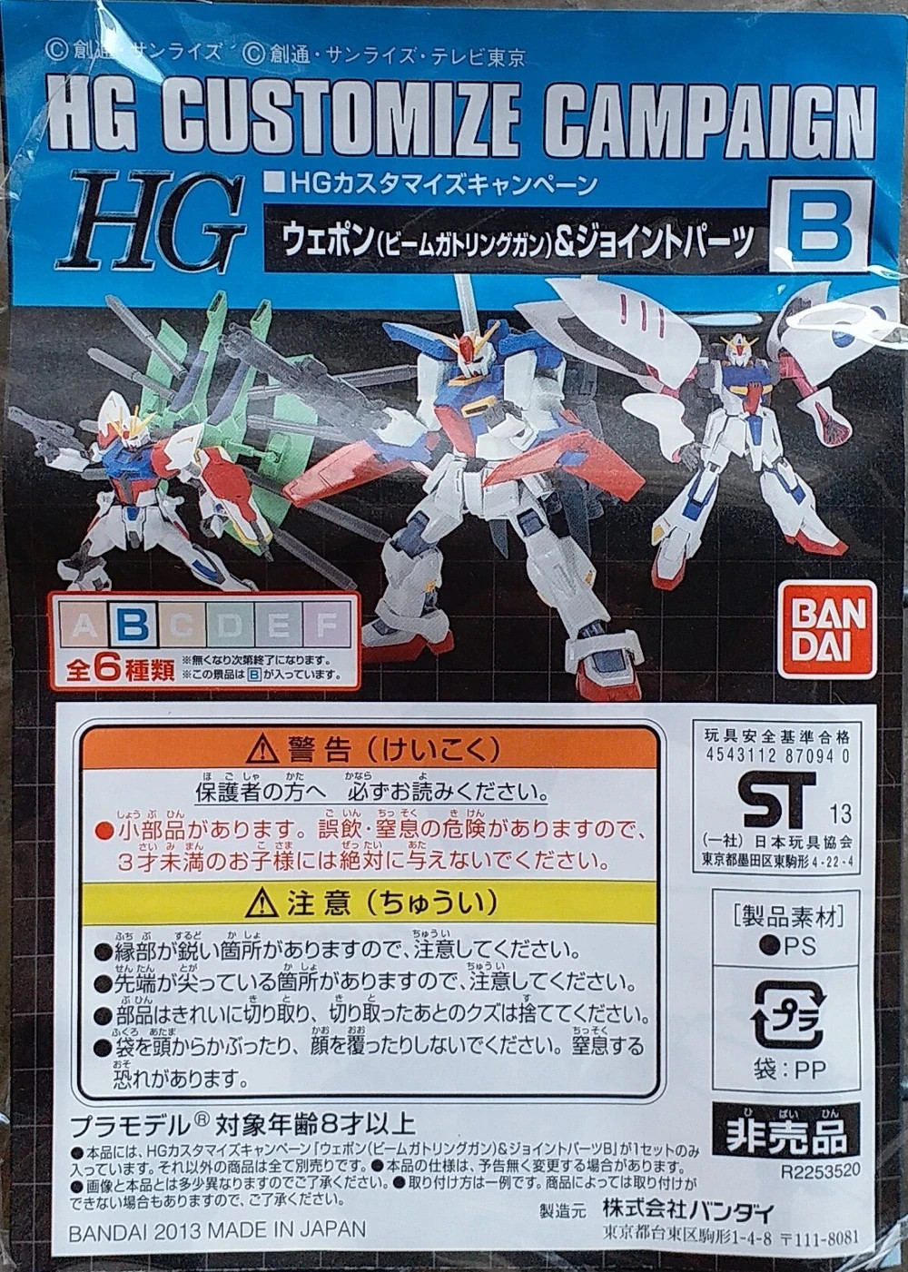 HG (B) CUSTOMIZE CAMPAIGN (Beam Gatling Gun) & Joint Parts Summer 2013 - NIB