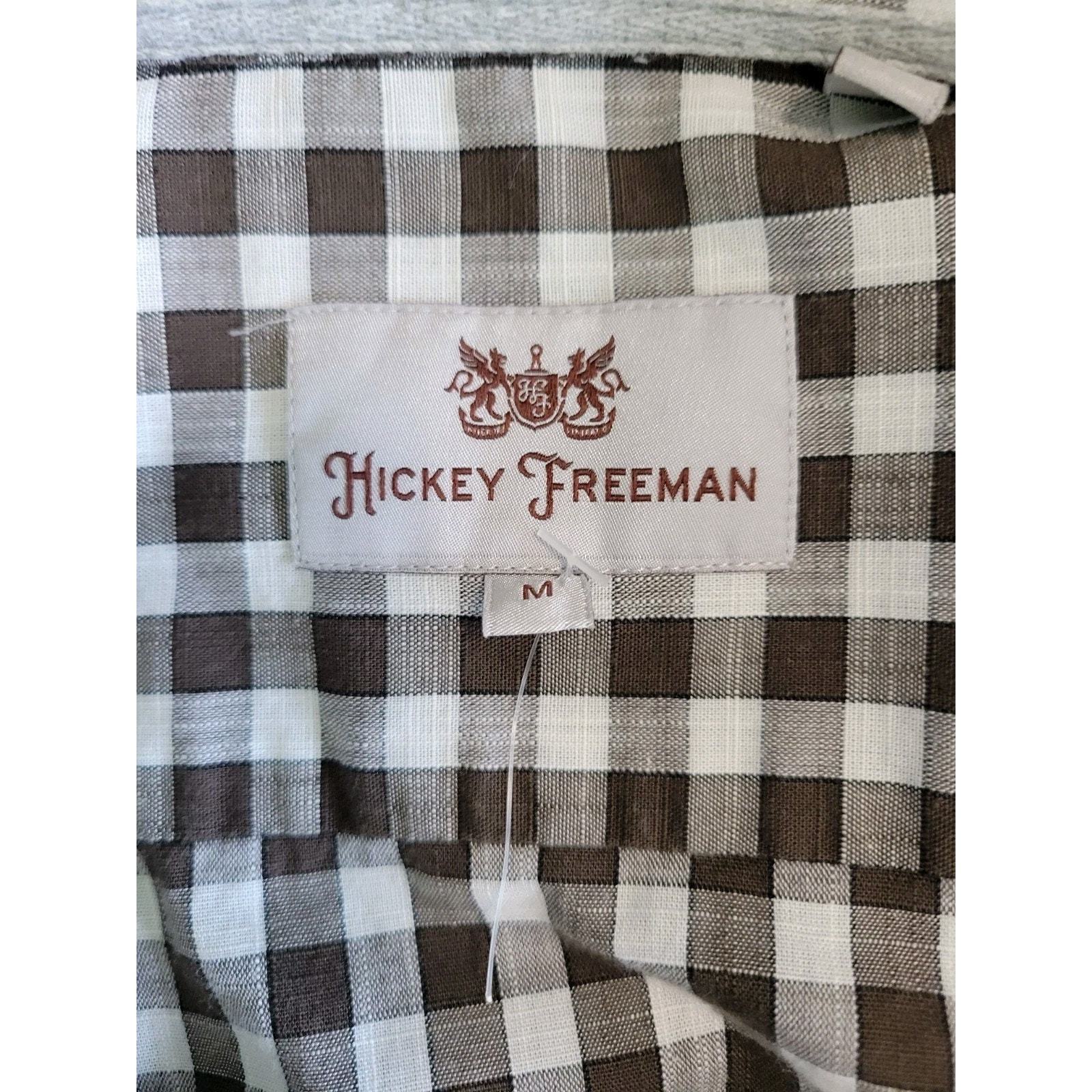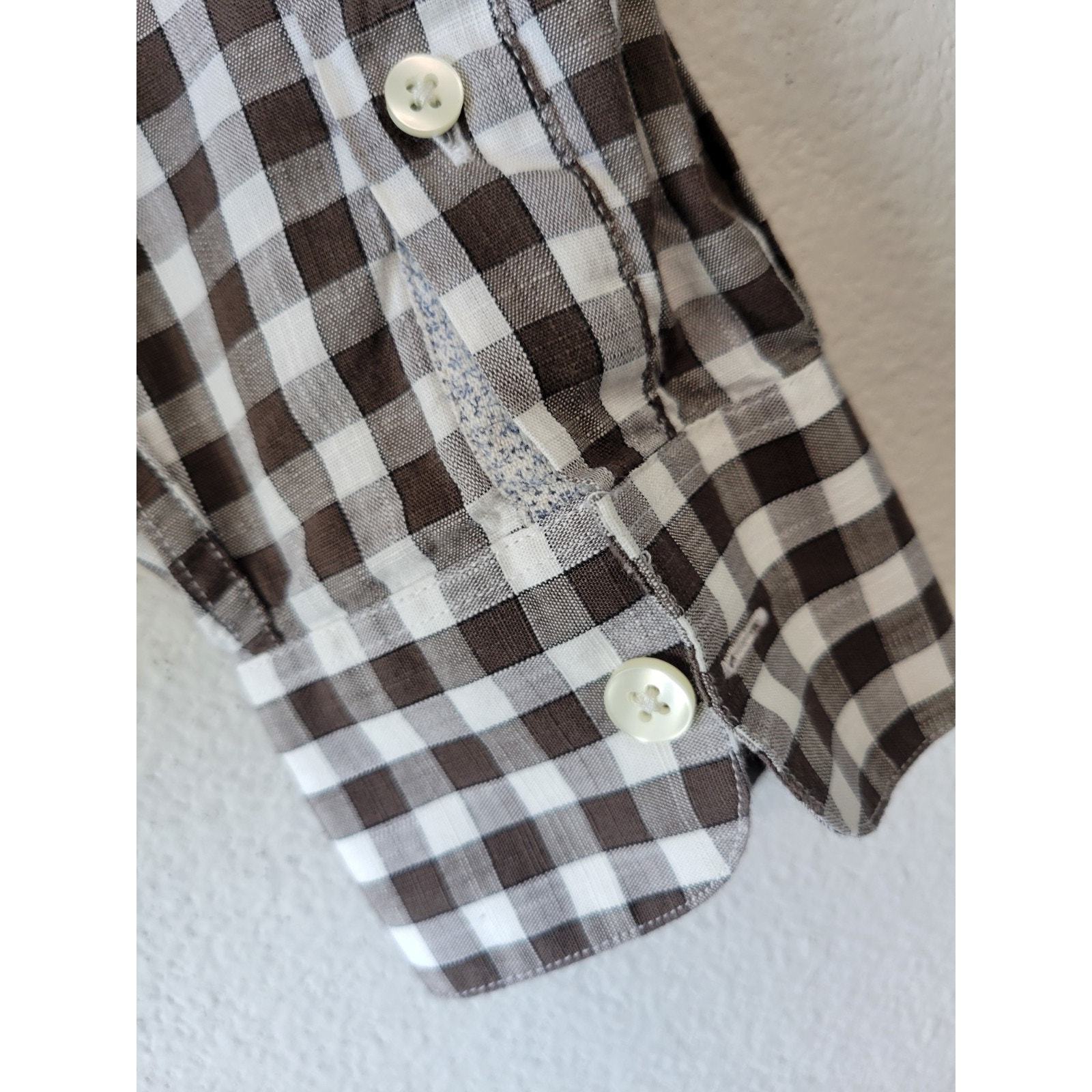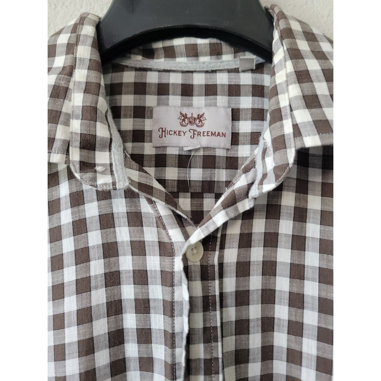 Primary image for Hickey Freeman Button Shirt Mens Medium Brown White Check 100% Cotton