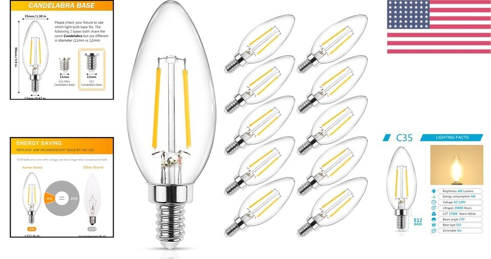Effortless Installation: Featuring a standard American E12 candelabra screw base for seamless setup in any compatible light fixture.