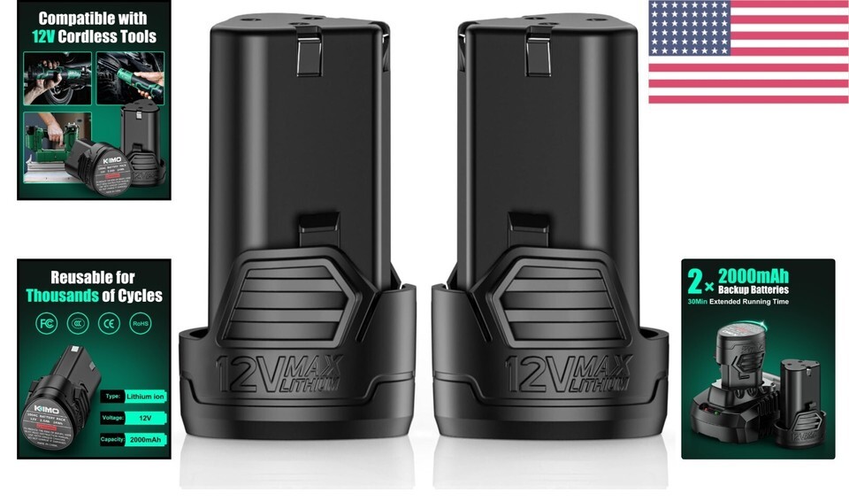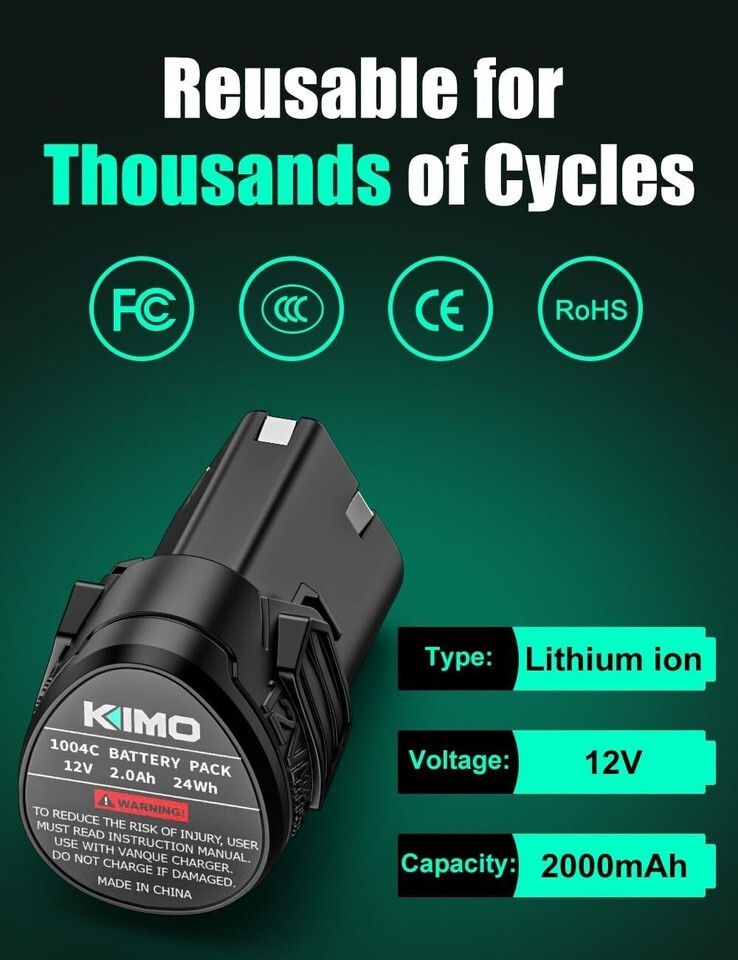 - High-Capacity 2-Pack KIMO 12V Batteries for Cordless Tools - Durable and Safe