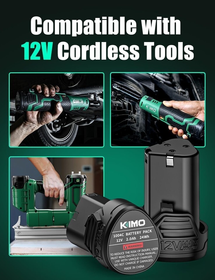 High-Capacity 2-Pack KIMO 12V Batteries for Cordless Tools - Durable and Safe