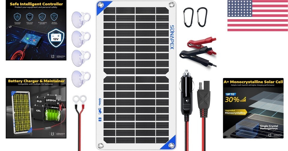 Primary image for High-Efficiency 10W Monocrystalline Solar Panel Charger - IP67 Waterproof Design