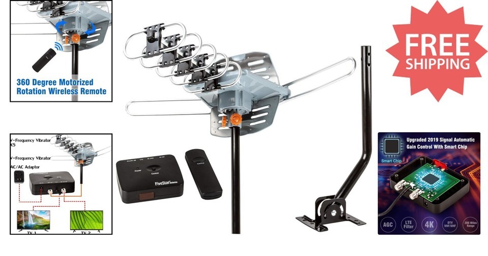 Upgrade your TV experience with our high-performance antenna, offering an impressive 150-mile range with advanced UHF/VHF amplification for clear, free access to local HD channels like ABC, CBS, NBC, and Fox ? perfect for rural and suburban environments. Enjoy effortless signal optimization via remote-controlled 360 motorized rotation, eliminating the need for roof access. Support for dual TVs with a built-in booster and LTE filter ensures strong, interference-free reception. Rugged and weather-resistant, this durable antenna withstands outdoor conditions, while the comprehensive kit?including 40 ft coaxial cable, control box, power supply, remote, and manual?makes setup simple and hassle-free. To ensure fast and reliable delivery, we work with multiple fulfillment partners and suppliers. Depending on availability and location, your order may ship from different warehouses or arrive in packaging that varies from item to item. Tracking details are typically provided shortly after shipment, and customer satisfaction remains our top priority. Please note that due to carrier policies and regional regulations, certain items may not be eligible for delivery to specific states or territories.
