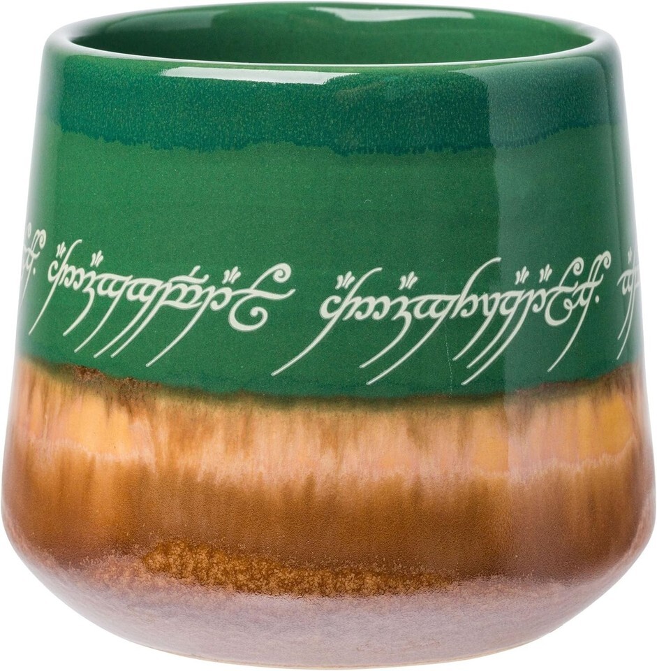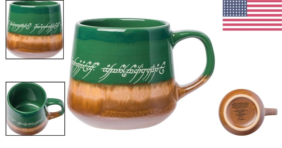 High Gloss Reactive Glaze Lord of the Rings Mug with Elvish Text ? 14oz Capacity ? ? ? ? ? ? ? ? ? ? ? ? ? ? ? ? High Gloss Reactive Glaze Lord of the Rings Mug Featuring Elvish Text ? 14oz Capacity ONE MUG TO RULE THEM ALL: Delve into the enchanting world of J.R.R. Tolkien's epic saga with this exclusive pottery mug inspired by The Lord of the Rings. Each sip transports you to the realms of Middle-earth as you embrace the wisdom of the Elder Children of Iluvatar. THE MAGIC OF MIDDLE-EARTH: This exquisite two-tone coffee mug showcases scrolling Elvish text, gracefully wrapping around the design in detailed print, making it a true masterpiece. No need to embark on a quest when you can have this gem in your hands at home. SHARE THE FANTASY IN EVERY SIP: Quench your thirst and ward off the dark forces of Mordor with your trusted ally beside you. With a generous capacity of approximately 14 ounces, this coffee cup is perfect for enjoying both hot and cold beverages alike. FORGED WITH QUALITY CRAFTSMANSHIP: Live out your own legendary tale with this BPA-free ceramic mug, designed for all of life?s adventures, whether in a busy cafe or a tranquil forest glade. This mug is easy to maintain and is suitable for top-rack dishwasher cleaning! AN OFFICIAL COLLECTIBLE: Embark on your next Middle-earth journey reinforced with the essence of Elvish magic. This officially licensed pottery mug ensures that your quest for the One Ring is never forgotten, forever encapsulating the spirit of The Lord of the Rings trilogy. Why Choose This Beautiful Mug? Elegant high gloss finish with intricate Elvish detailing. Versatile use as a mug, paperweight, pen holder, or even a stylish change collector. Perfect for all occasions?be it a cozy tea time, a birthday gift, or a housewarming present. Crafted with great attention to detail, connecting fans to their beloved characters. Indulge in the magic of Middle-earth with a sip of your favorite brew. Gift it to the Lord of the Rings aficionado in your life or treat yourself to a collectible that rivals the treasures of Smaug! Order your High Gloss Reactive Glaze Mug today and let the adventure begin! Shipping Free Fast Shipping - We offer free shipping to most of the USA with a normal delivery time of 3-7 days. However, due to the current situation, additional delivery time (up to 3 weeks) may be required for some items. Alternative Carriers - We may use alternative carriers (e.g. USPS, FedEx, UPS, etc.) to ensure your package arrives safely and on time. Due to the use of multiple carriers, we are unable to provide a tracking number automatically. Handling Time - Orders are processed and shipped within 1-2 business days of receiving cleared payment. Shipping Restrictions - Shipping to Alaska, Hawaii, Puerto Rico, Guam, and other US territories may incur shipping charges or delivery restrictions. Please contact us before ordering, or your order can be refunded/cancelled. State Restrictions - There may be restrictions based on your state of purchase. For example, certain items may not be shipped to California due to state regulations. Contact for Tracking Updates - If you require tracking updates or have any concerns about the delivery of your order, please feel free to contact us, and we will be happy to assist you. Return 30-Day Hassle-Free Returns - We want you to be completely satisfied with your purchase. If you are not, you can return the item within 30 days of receiving it for a full refund or exchange. Easy Return Process - To start a return, simply contact us and we will provide you with a prepaid return shipping label and detailed instructions. Restocking Fee - There are no restocking fees for returns. However, the buyer is responsible for return shipping costs if the return is not due to a seller's error. Refund Processing Time - Refunds will be processed within 5 business days of receiving the returned item in its original condition. Payment We accept all major credit cards, PayPal, and Apple Pay for your convenience. Your payment information is secure and encrypted to ensure a safe and seamless transaction. Please complete your payment within 3 days of purchase to avoid any delays in shipping. Feedback Your feedback is extremely important to us. We strive to provide the best products and customer service possible. If you are satisfied with your purchase, please take a moment to leave us a positive review. If you have any concerns or issues with your order, please contact us before leaving negative feedback. We are committed to resolving any problems and ensuring your satisfaction. Contact Us If you have any questions or concerns, please feel free to reach out to our customer support team. You can contact us through the messaging system. We are available Monday to Friday, 9:00 am to 5:00 pm EST, and we will do our best to respond to your inquiry within 24 hours. Buy it now and enjoy a pleasant shopping experience! Country/Region of Manufacture: Lord of the Rings Mug Franchise: The Lord of the Rings Genre: Fantasy