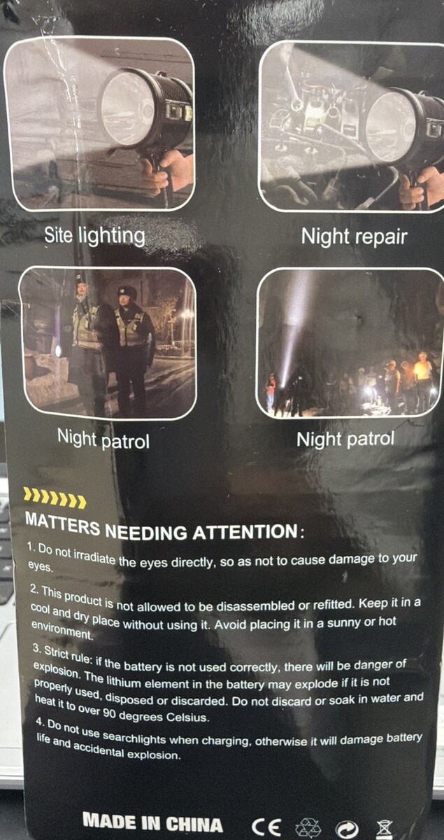 About the product: Description: High Intensity Search Light- Red And Blue Side Lights Product Details: High Intensity Search Light- Red And Blue Side Lights Store Policies: Handling We will ship all orders within 1 business day of payment. Payment must be received between 3 days of the end of the transaction. We accept the following type of payments: all major credit cards, PayPal and payment upon pick-up. Delivery Please note that express or priority mail only applies to transit time, it does not rush your order. International orders over $25 will require insurance. Return Policy We guaranteed our products for a full refund up to 5 days after customer receives the item(s), if the item(s) is not exactly as described and pictured, shipping charges are non refundable. Items described as irregulars are final sales, AS IS, no refunds/returns. Any refund(s) are only for the amount of purchase minus 15% for restocking fee. Returned item(s) must be in the exact same condition, any damages or any kind of alteration to the product have to be notify and agreed upon by us before return is made. Feedback We take our reputation seriously, we buy and sell online, so we understand the value of trust. If you are unsatisfied with your order, please contact us and we will work with you to resolve it to your satisfaction.