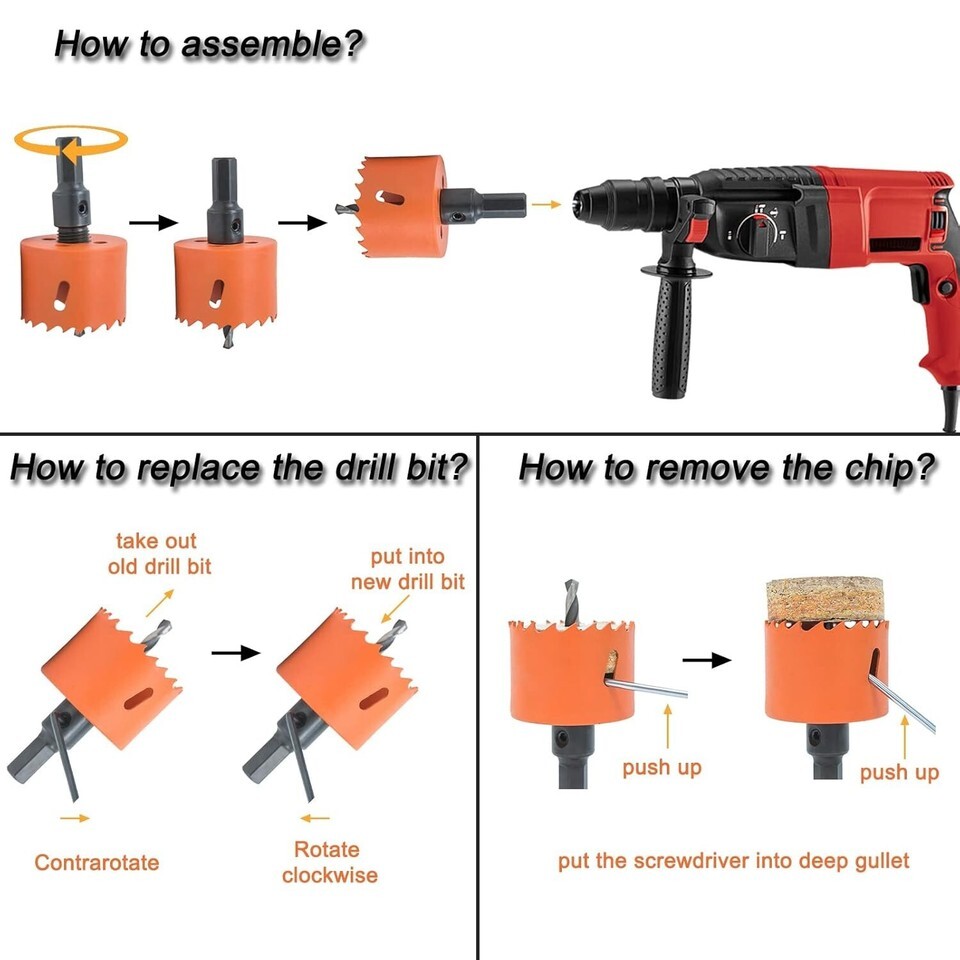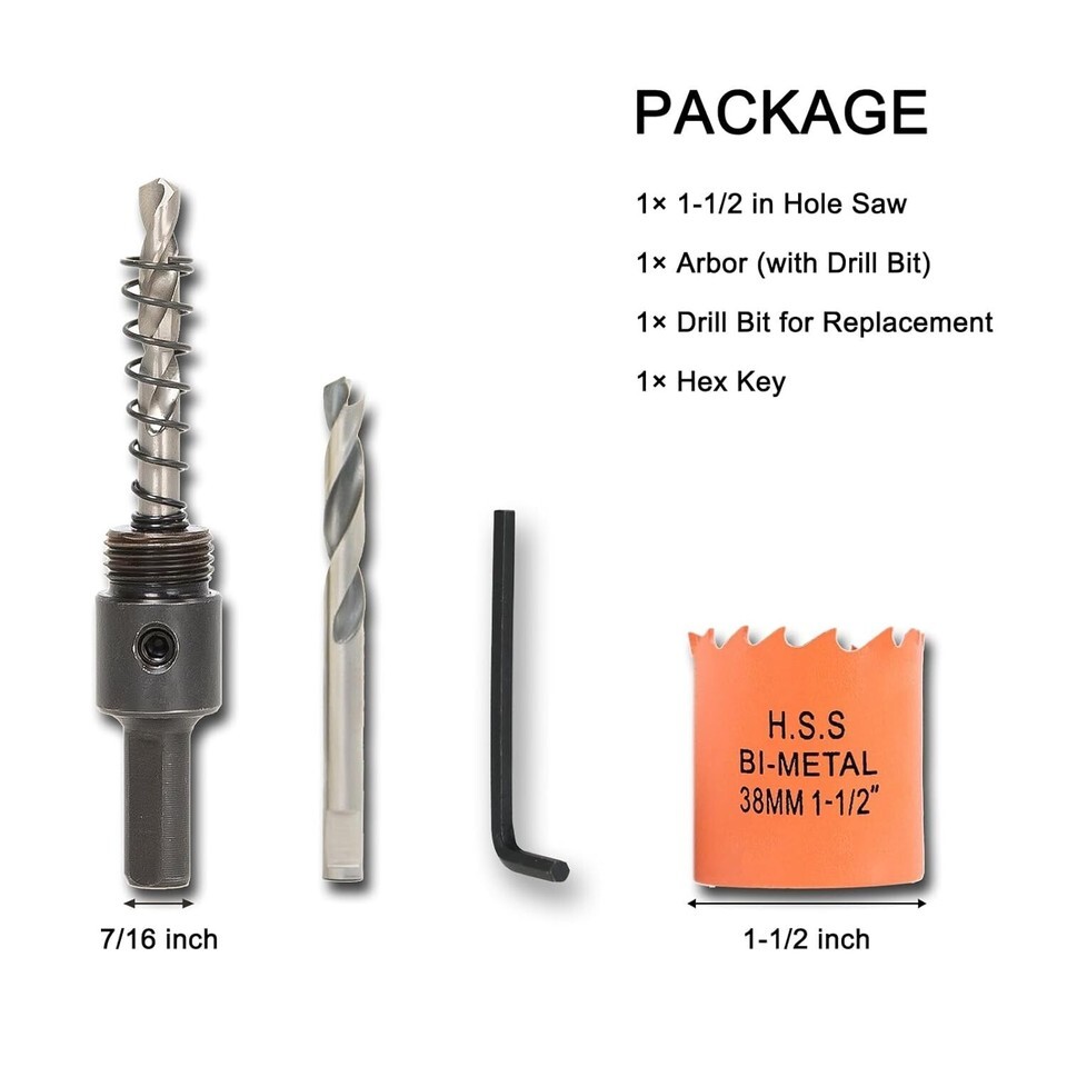 High-Performance 1.5 Inch Hole Saw Kit with Arbor Drill Bit for Versatile Use ? ? ? ? ? ? ? ? ? ? ? ? ? ? ? ? High-Performance 1.5 Inch Hole Saw Kit Complete with Arbor Drill Bit for Versatile Use Package Includes: 1 pc 1-1/2 inch hole saw 1 pc arbor (with 1 drill bit) 1 pc replacement drill bit 1 pc hex key Features: Sharp and Durable: Crafted from bi-metal construction featuring high-speed steel saw teeth and a flexible steel body for longer life and sharper edges. Wide Application: Designed to effortlessly cut through thin metals, wood, plaster board, plywood, duct, drywall, soft plaster, corn hole boards, and plastic. Perfect for both the avid DIYer and professional projects. Easy to Use: Simple instructions allow for a quick setup; just pass the pilot drill bit through the center circular hole and easily tighten the arbor. High Work Efficiency: Deep gullets on the sides deliver rapid chip removal, ensuring a smooth cutting experience. Important Note: This hole saw is not suitable for drilling through glass, ceramic, or concrete. Using coolant or water during metal drilling can enhance performance. Why Choose Our Hole Saw Kit? Elevate your tool collection with this expertly designed High-Performance Hole Saw Kit. Featuring exceptional sharpness and durable construction, it ensures precision cuts for all your projects without the frustration of excessive wear. With its versatility across multiple materials, from wood to metal, this kit is equipped to handle both routine tasks and complex undertakings. Experience superior cutting efficiency and ease with our hole saw kit?order yours today and take your DIY and professional projects to the next level! Shipping Free Fast Shipping - We offer free shipping to most of the USA with a normal delivery time of 3-7 days. However, due to the current situation, additional delivery time (up to 3 weeks) may be required for some items. Alternative Carriers - We may use alternative carriers (e.g. USPS, FedEx, UPS, etc.) to ensure your package arrives safely and on time. Due to the use of multiple carriers, we are unable to provide a tracking number automatically. Handling Time - Orders are processed and shipped within 1-2 business days of receiving cleared payment. Shipping Restrictions - Shipping to Alaska, Hawaii, Puerto Rico, Guam, and other US territories may incur shipping charges or delivery restrictions. Please contact us before ordering, or your order can be refunded/cancelled. State Restrictions - There may be restrictions based on your state of purchase. For example, certain items may not be shipped to California due to state regulations. Contact for Tracking Updates - If you require tracking updates or have any concerns about the delivery of your order, please feel free to contact us, and we will be happy to assist you. Return 30-Day Hassle-Free Returns - We want you to be completely satisfied with your purchase. If you are not, you can return the item within 30 days of receiving it for a full refund or exchange. Easy Return Process - To start a return, simply contact us and we will provide you with a prepaid return shipping label and detailed instructions. Restocking Fee - There are no restocking fees for returns. However, the buyer is responsible for return shipping costs if the return is not due to a seller's error. Refund Processing Time - Refunds will be processed within 5 business days of receiving the returned item in its original condition. Payment We accept all major credit cards, PayPal, and Apple Pay for your convenience. Your payment information is secure and encrypted to ensure a safe and seamless transaction. Please complete your payment within 3 days of purchase to avoid any delays in shipping. Feedback Your feedback is extremely important to us. We strive to provide the best products and customer service possible. If you are satisfied with your purchase, please take a moment to leave us a positive review. If you have any concerns or issues with your order, please contact us before leaving negative feedback. We are committed to resolving any problems and ensuring your satisfaction. Contact Us If you have any questions or concerns, please feel free to reach out to our customer support team. You can contact us through the messaging system. We are available Monday to Friday, 9:00 am to 5:00 pm EST, and we will do our best to respond to your inquiry within 24 hours. Buy it now and enjoy a pleasant shopping experience! UPC: Not Set Model: Hole Saw Item Height: Hole Saw Item Depth: 2.36 in Unit Quantity: 1 Suitable For: Drill,Metal,Wood,Plastic,Plaster Board,Plywood,Duct,Drywall,Soft Plaster,Corn Hole Boards Type: Hole Saw,Bimetal Hole Cutter Application: Cutting Brand: Unbranded Number of Items in Set: 1 Package Quantity: 1 Material: High Speed Steel MPN: Not Set Color: Orange Country/Region of Manufacture: Not Set Item Diameter: 1-1/2 in Item Length: Not Set Item Width: Not Set Manufacturer Warranty: Not Set Item Weight: 5.61 oz Unit Type: oz