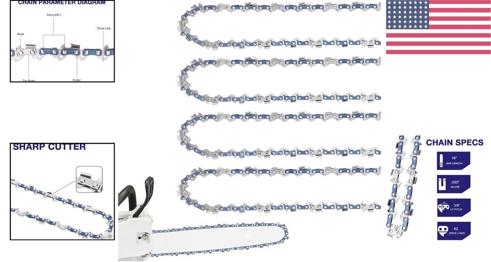Upgrade your cutting experience with our exceptional 18-inch chainsaw chain designed to deliver precision, durability, and reliability. This pack includes 4 high-performance chains that fit most major chainsaw brands with ease.