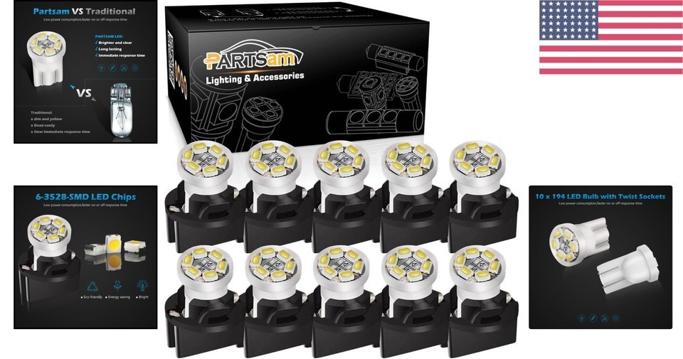 10 X T10 DASH LED BULBS: Each bulb features advanced 6-3528-SMD LED chipsets, providing clear, bright white light.