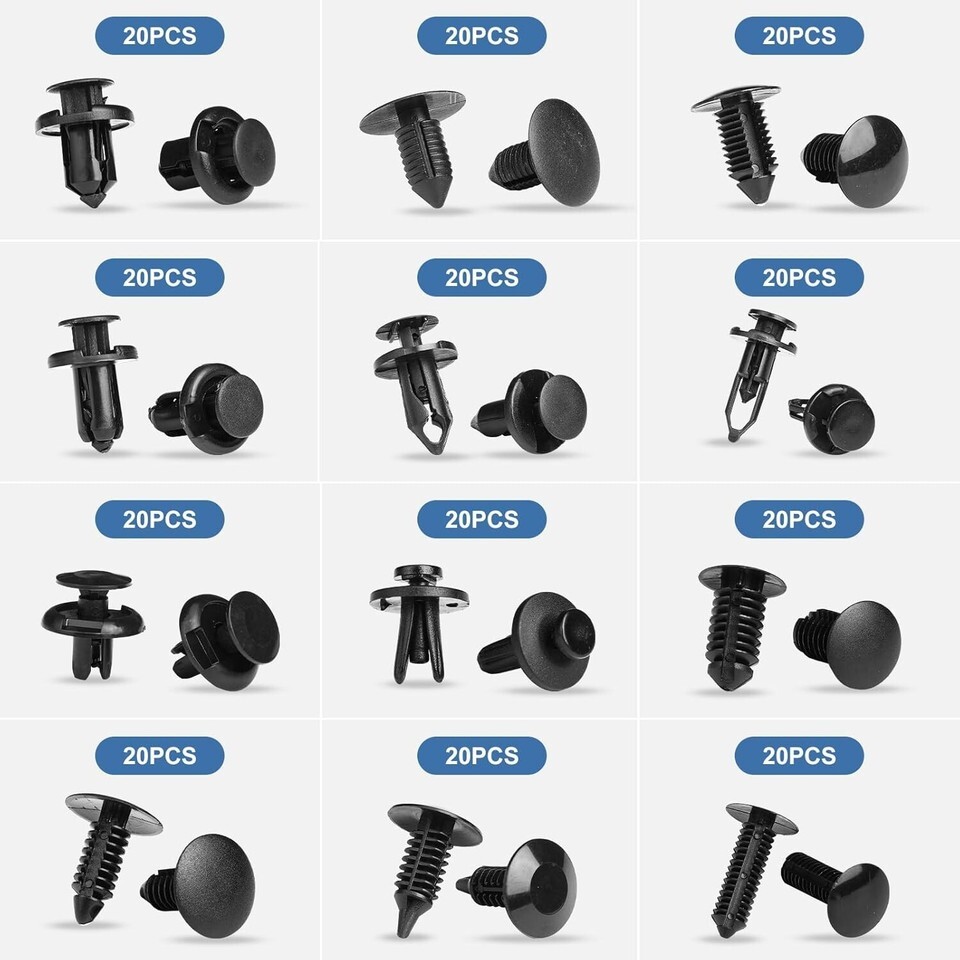 High-Quality 240 Pcs Fastener Retainer Clip Kit - 12 Sizes for Easy Replacement