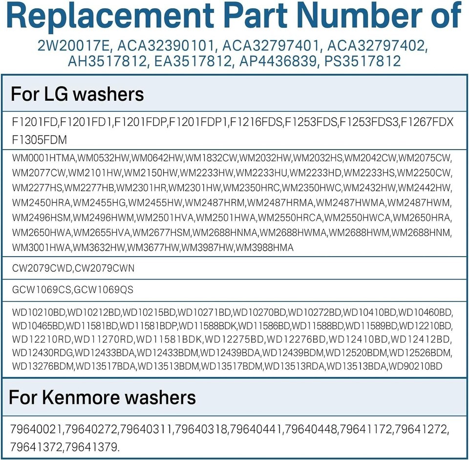 Compatibility: Replaces part numbers ACA32390101, ACA32797401, ACA32797402, AH3517812, EA3517812, AP4436839, PS3517812, making it suitable for a wide range of LG and Kenmore washers.