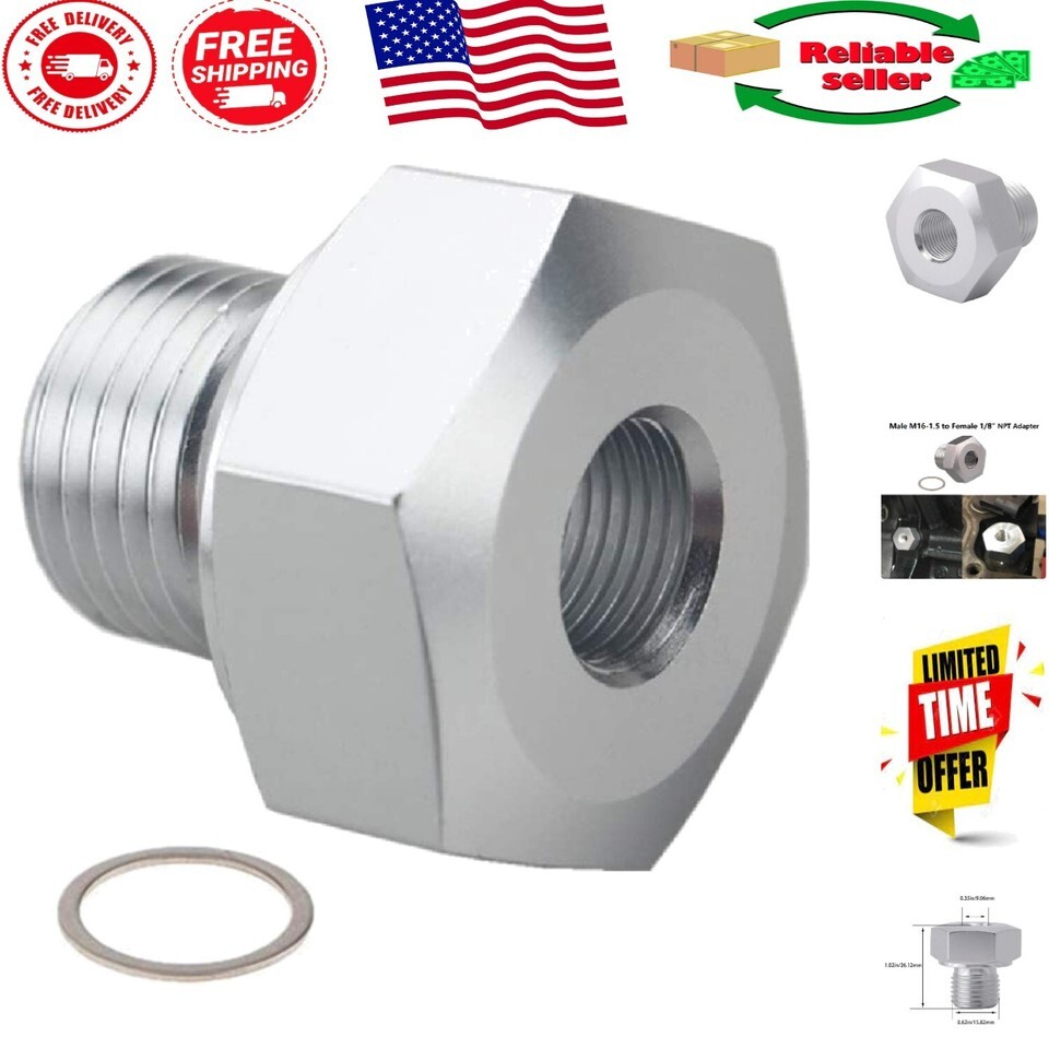 High-Quality LS Swap Oil Pressure Sensor Adapter for All GM LS Engines 4.2L-6.2L ? ? ? ? ? ? ? ? ? ? ? ? ? ? ? ? High-Quality LS Swap Oil Pressure Sensor Adapter Designed for All GM LS Engines 4.2L-6.2L Features: Compatible with all GM LS Series Engines Precision threads that ensure a perfect seal without leaks Manufactured from high-quality aluminum for excellent oxidation and corrosion resistance Durable construction that performs reliably under pressure Male M16-1.5 and Female 1/8" NPT fittings for versatile installation options 1/8" NPT taper pipe thread port in the rear for common sensors or plumbing fittings Robust wall thickness at the base of the male threads preventing cracking or breakage Installs typically at the top-rear or front-driver side of the engine block Seals securely to the block with a sealing washer for added reliability Package Includes: 1 Adapter 1 Sealing Washer Why Choose This LS Oil Pressure Sensor Adapter? When it comes to your engine, precision and reliability are non-negotiable. This High-Quality LS Swap Oil Pressure Sensor Adapter is crafted from materials to ensure long-lasting performance and a perfect fit for your GM LS engine?whether it?s the powerful LS1, LS3, or LSX models. The thoughtful design includes precision threads to eliminate leaks, while the sturdy construction ensures that it can withstand the demands of your engine's pressurized oil systems. Whether you are fitting a mechanical oil pressure gauge or accessing your engine?s oil flow, this adapter will meet and exceed your expectations. Elevate your engine swap experience with our oil pressure sensor adapter ? crafted for enthusiasts who demand the best. Order yours today for a flawless fit and unbeatable performance! Shipping Free Fast Shipping - We offer free shipping to most of the USA with a normal delivery time of 3-7 days. However, due to the current situation, additional delivery time (up to 3 weeks) may be required for some items. Alternative Carriers - We may use alternative carriers (e.g. USPS, FedEx, UPS, etc.) to ensure your package arrives safely and on time. Due to the use of multiple carriers, we are unable to provide a tracking number automatically. Handling Time - Orders are processed and shipped within 1-2 business days of receiving cleared payment. Shipping Restrictions - Shipping to Alaska, Hawaii, Puerto Rico, Guam, and other US territories may incur shipping charges or delivery restrictions. Please contact us before ordering, or your order can be refunded/cancelled. State Restrictions - There may be restrictions based on your state of purchase. For example, certain items may not be shipped to California due to state regulations. Contact for Tracking Updates - If you require tracking updates or have any concerns about the delivery of your order, please feel free to contact us, and we will be happy to assist you. Return 30-Day Hassle-Free Returns - We want you to be completely satisfied with your purchase. If you are not, you can return the item within 30 days of receiving it for a full refund or exchange. Easy Return Process - To start a return, simply contact us and we will provide you with a prepaid return shipping label and detailed instructions. Restocking Fee - There are no restocking fees for returns. However, the buyer is responsible for return shipping costs if the return is not due to a seller's error. Refund Processing Time - Refunds will be processed within 5 business days of receiving the returned item in its condition. Payment We accept all major credit cards, PayPal, and Apple Pay for your convenience. Your payment information is secure and encrypted to ensure a safe and seamless transaction. Please complete your payment within 3 days of purchase to avoid any delays in shipping. Feedback Your feedback is extremely important to us. We strive to provide the best products and customer service possible. If you are satisfied with your purchase, please take a moment to leave us a positive review. If you have any concerns or issues with your order, please contact us before leaving negative feedback. We are committed to resolving any problems and ensuring your satisfaction. Contact Us If you have any questions or concerns, please feel free to out to our customer support team. You can contact us through the messaging system. We are available Monday to Friday, 9:00 am to 5:00 pm EST, and we will do our best to respond to your inquiry within 24 hours. Buy it now and enjoy a pleasant shopping experience! Placement on Vehicle: Engine Compartment Features: Easy Installation,Durable,Built to seal without leaking Terminal Type: None Items Included: Mounting Hardware,1 adapter,1 sealing washer Material: Aluminum Mounting Style: Flange Mount Type: Adapter Sensor Type: None Wire Quantity: None Number of Sensors: None Item Weight: 0.02 kilograms Thread Diameter: M16 1.5 Item Diameter: 0.98 inches Connector Type: Male Connector Color: None Hex Size: None