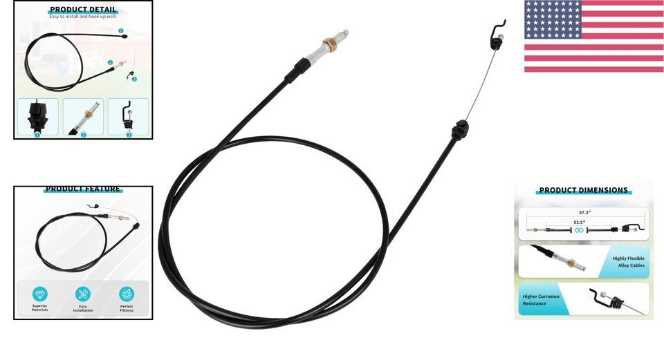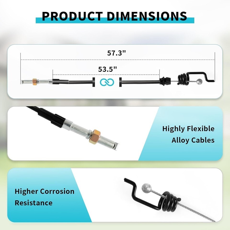Length Specifications: Cable length of 57.3" and conduit length of 53 1/2". Perfect for adjustment to fit your mower.