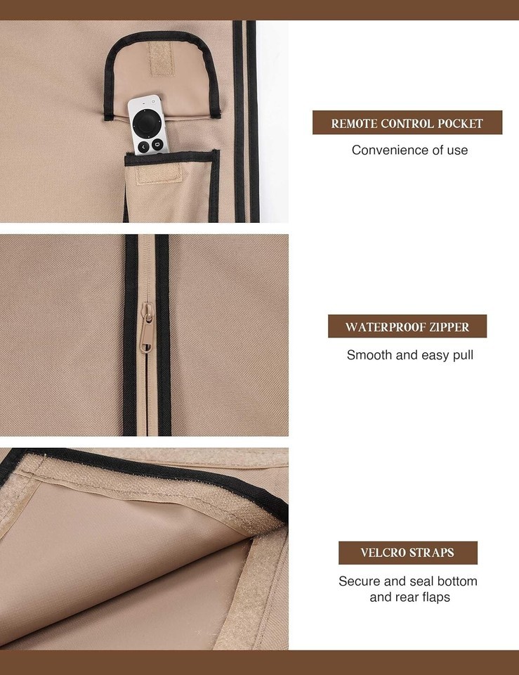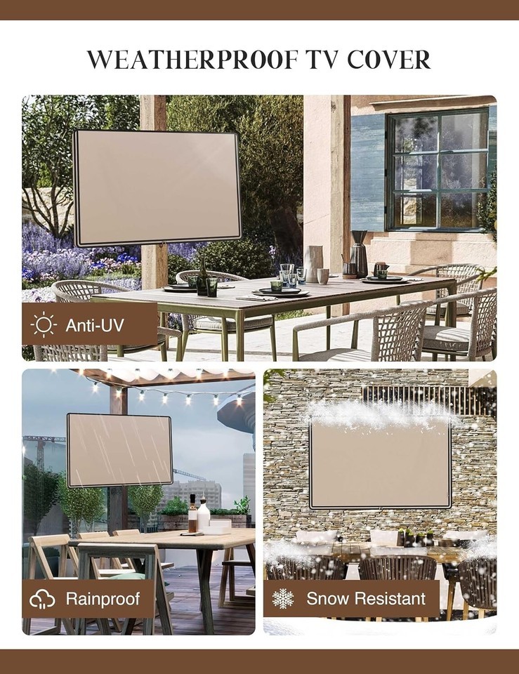 Protect your outdoor TV with our durable, waterproof cover designed to safeguard your electronic investment against harsh weather conditions. Measuring 29 inches wide, 19 inches high, and 5 inches deep, it offers a perfect fit?be sure to measure your TV for compatibility. Crafted from heavy-duty materials with a convenient zipper, it allows for easy installation and removal, while a handy pocket stores remote controls. The innovative design includes a back flap for added protection of your TV stand, ensuring peace of mind during the seasons' worst. Keep your outdoor entertainment safe and secure with this high-quality TV cover.
