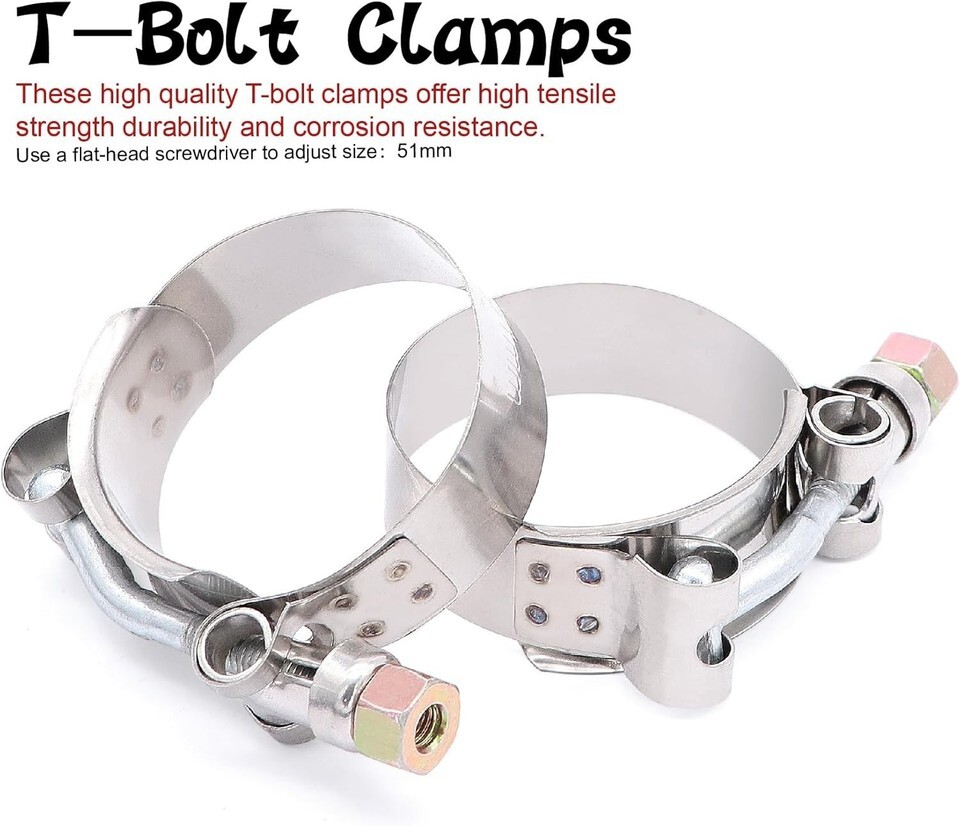 Coupler Hose, Stainless Steel T-Bolt Clamps |