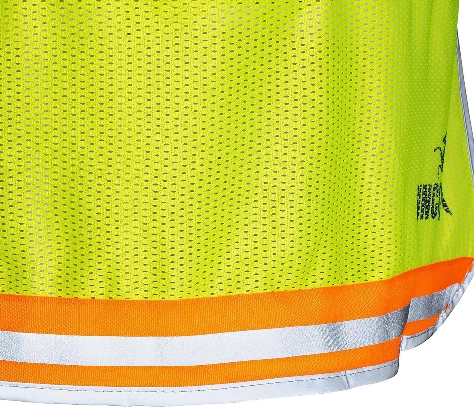 High-Visibility Material: Neon-colored fabric with reflective strips ensures maximum visibility, enhancing safety on the worksite.