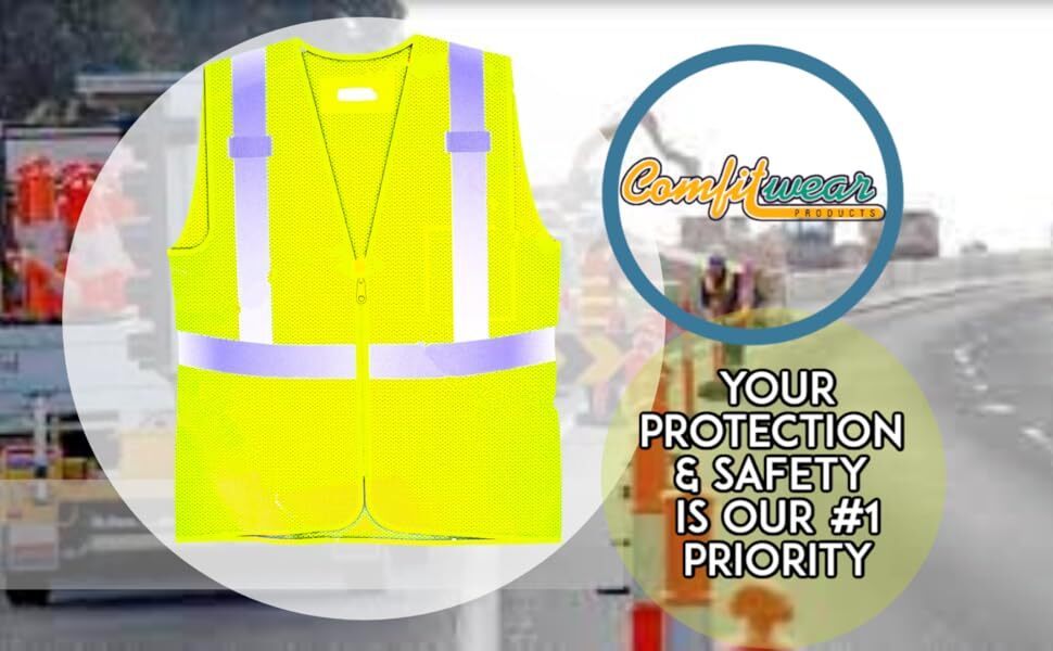 The COMFITWEAR High Visibility Safety Vest in Hi-Visibility Yellow is designed for construction work, outdoor activities, and traffic safety. The 2XL vest size ensures a comfortable fit for those needing extra room. With its bright color and reflective materials, this vest increases visibility and safety in various settings, making it an essential piece of personal protective equipment for individuals working in challenging environments.