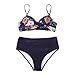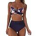 High Waisted Bikini Set for Women, Black Wrap Top with Leopard Print Bottom Beac