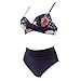 - High Waisted Bikini Set for Women, Black Wrap Top with Leopard Print Bottom Beac