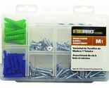 Two-piece kit includes: 15 each no. 8-10-12X1 plastic anchor (ribbed type - Blue), 10 each no. 12-14-16X1 plastic anchor (ribbed type - Green), 15 each Phillips flat head wood screw, 25 each no. 8X3/ 4 Phillips flat head wood screw, 21 each no. 8X1 Phillips flat head wood screw, 30 each no. 6X1 Phillips flat head wood screw, 20 each no. 8X1 slotted round head wood screw, 30 each no. 6X1 slotted round head wood screw, 1 each 1/4" Brad point high-speed drill bit, 1 each 5/16" Brad point high-speed drill bit. Leading provider of complete hardware solutions delivering the industry's best customer service and support.