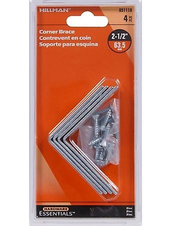- Hillman Hardware Essentials 851118 Corner Braces Steel Zinc 2-1/2" x 5/8" 4 Pack