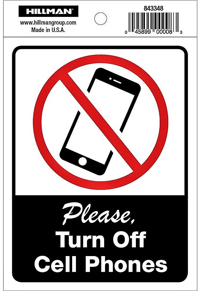 Hillman No Cell Phones Sign (4" x 6") |